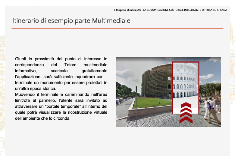 Un nuovo rinascimento per Roma è immaginato nel Progetto Mirabilia – della città intelligente, con manufatti abilitati alla tecnologia 5G ed in linea con la Missione 1- Digitalizzazione innovazione competizione e cultura. In Turismoe Cultura 4.0 del PNRR.